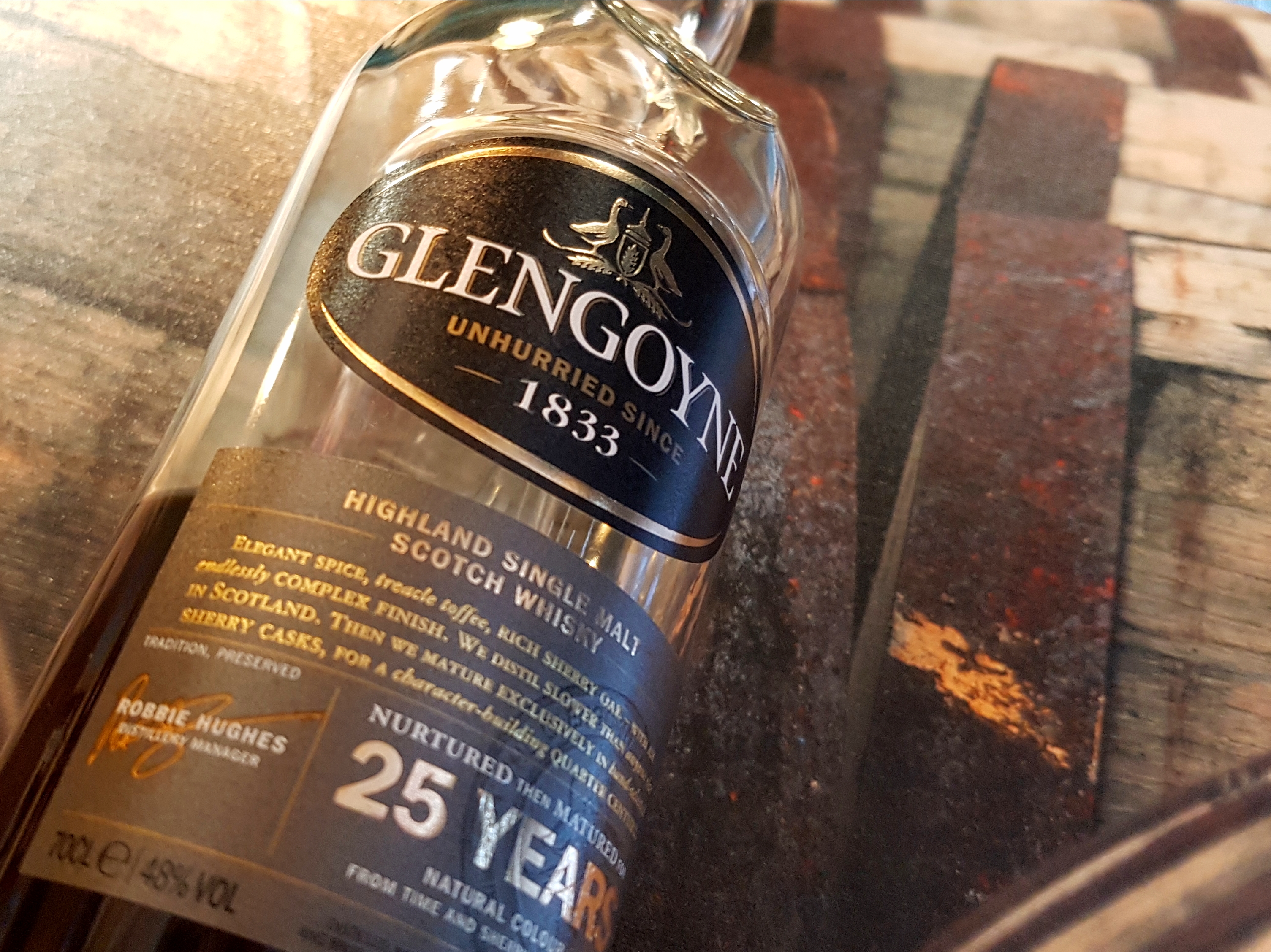Glengoyne. The older the expression, the more proper sherry influence. The younger expressions are a mix of bourbon and sherry. Those beyond the 18 are exclusively sherry. The 21…s’ok. The 25, though? Wow. On a rainy day like today I can 100% say that I could happily sip this all evening while the storm rages on outside my window. Beautiful stuff.