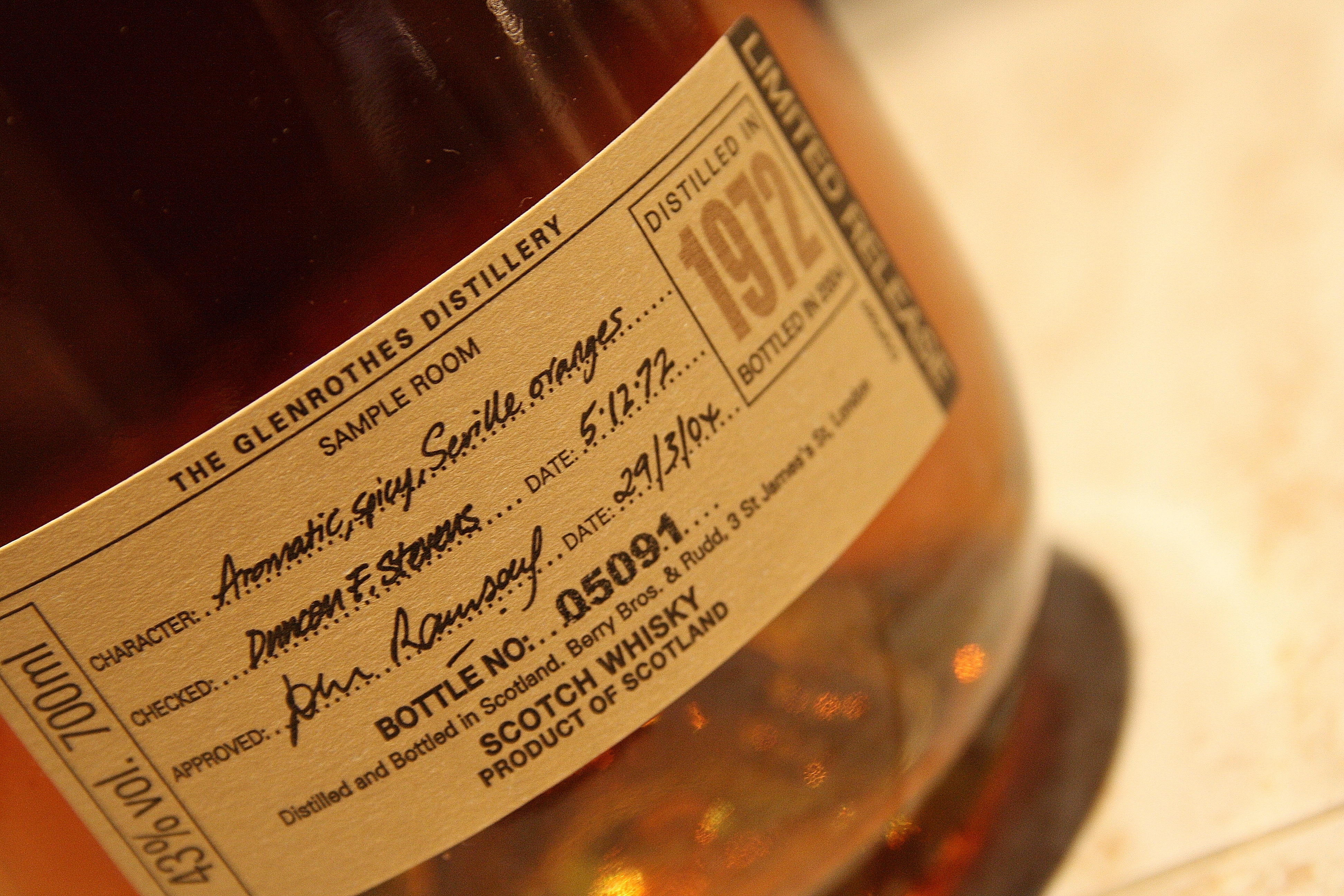 1972 Limited Release December 5, 1972 – March 29, 2004 43% ABV Bottle # 05091